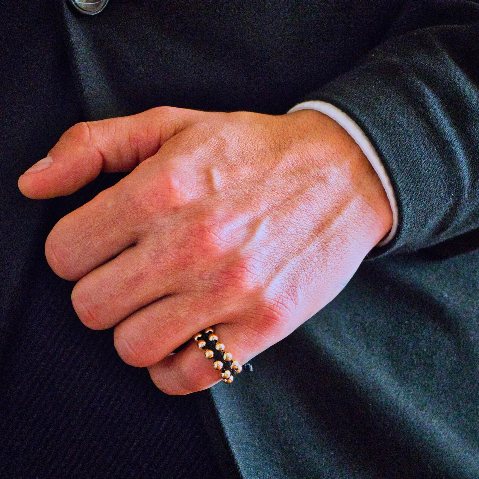- Anillo doble balín 4mm en macramé oro laminado 18k