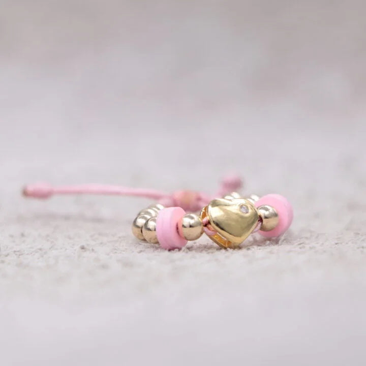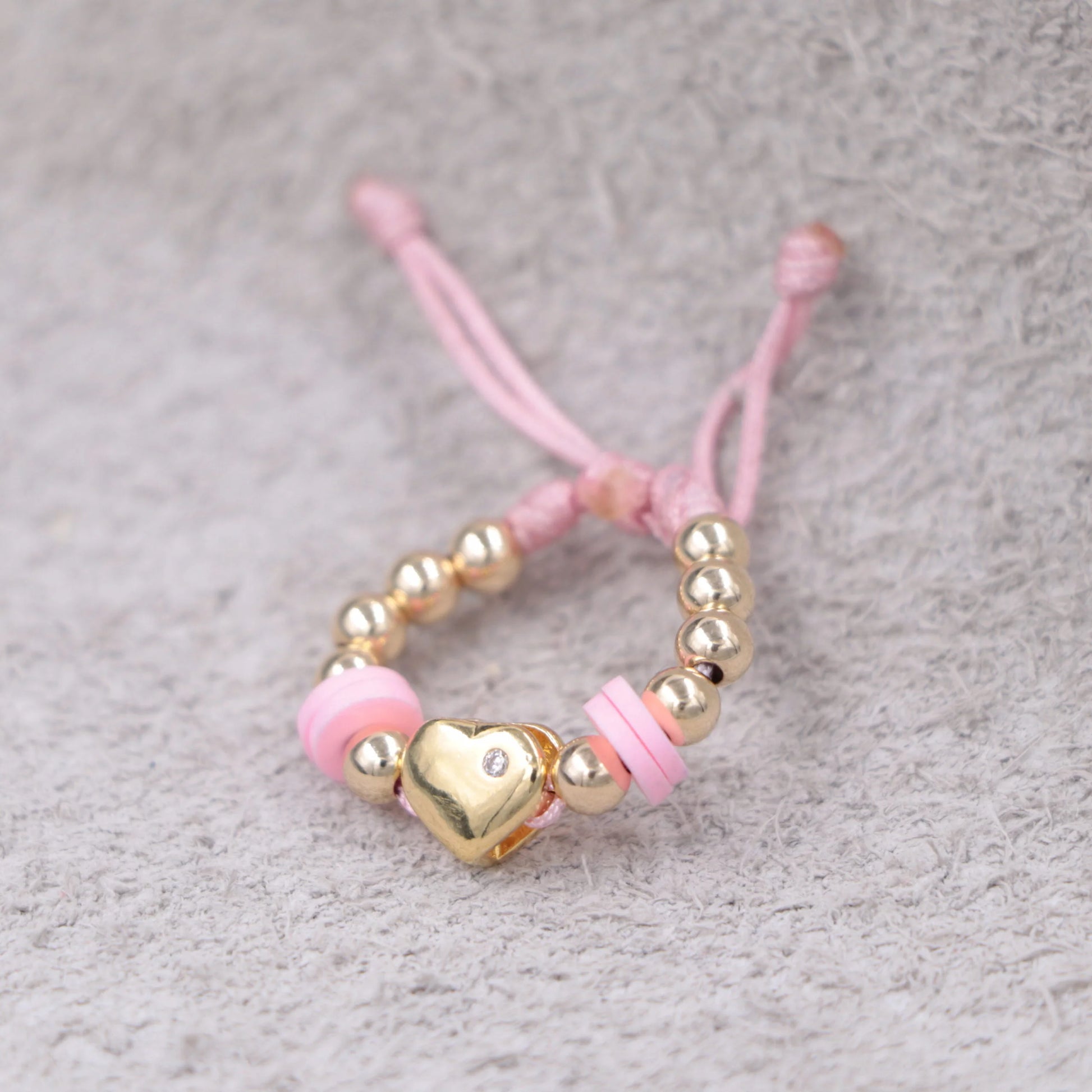 - Anillo Balin 4mm, Sarta y Herraje Corazón Rosado En Oro Laminado 18k