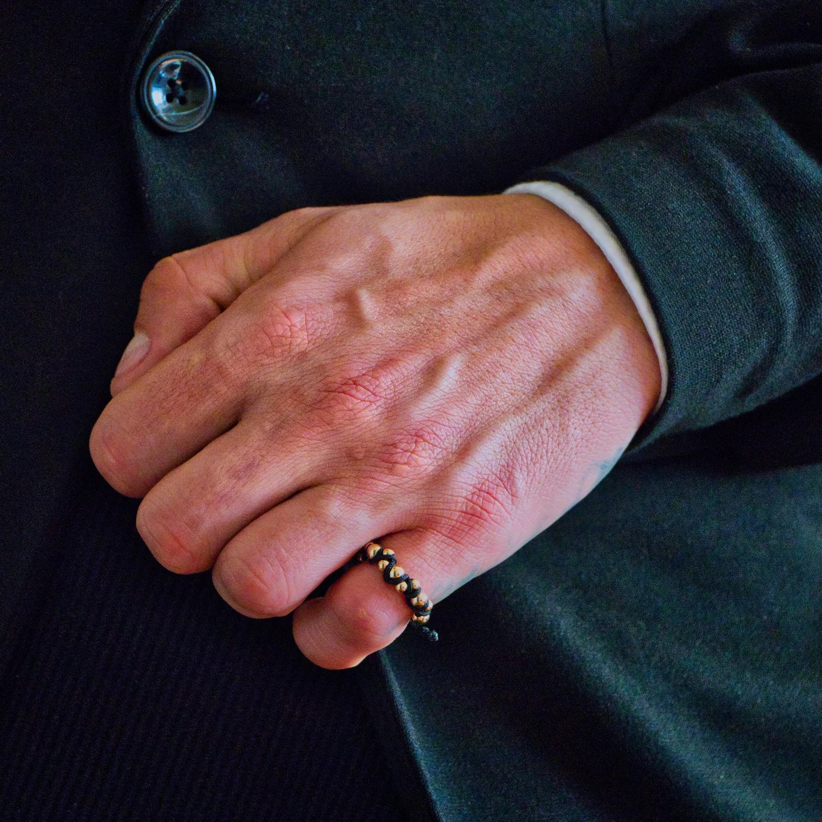 - Anillo plano macramé doble cruzado balin 4mm ,3mm oro laminado 18k