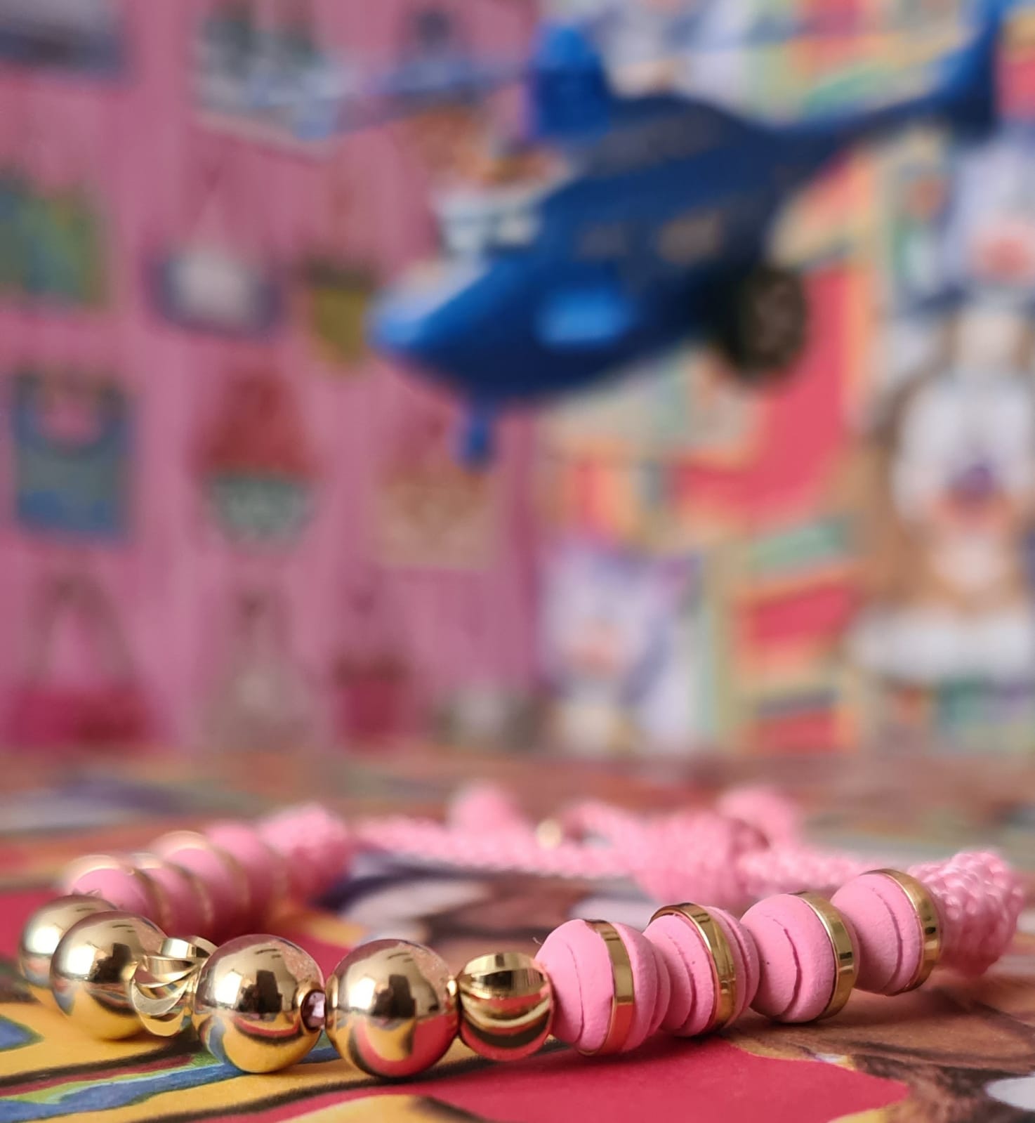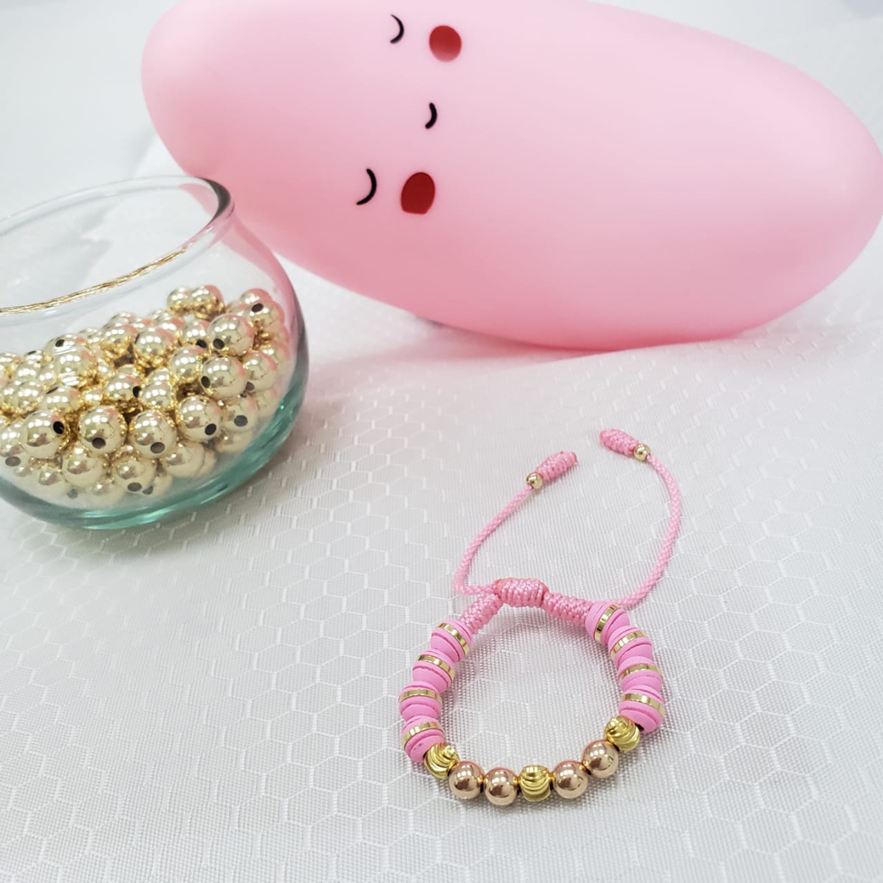 - Brazalete Con Balin de 6mm, Italianos de 5mm y Neoprenos Anillados En Oro Laminado 18k