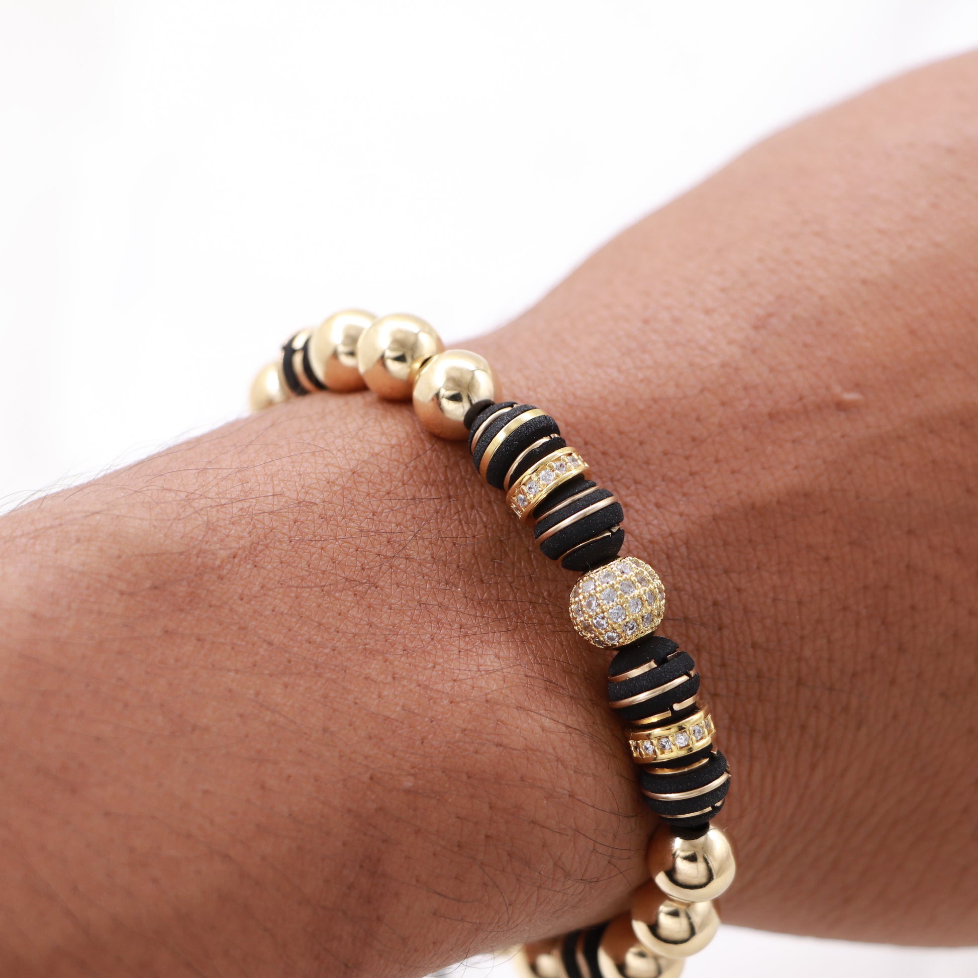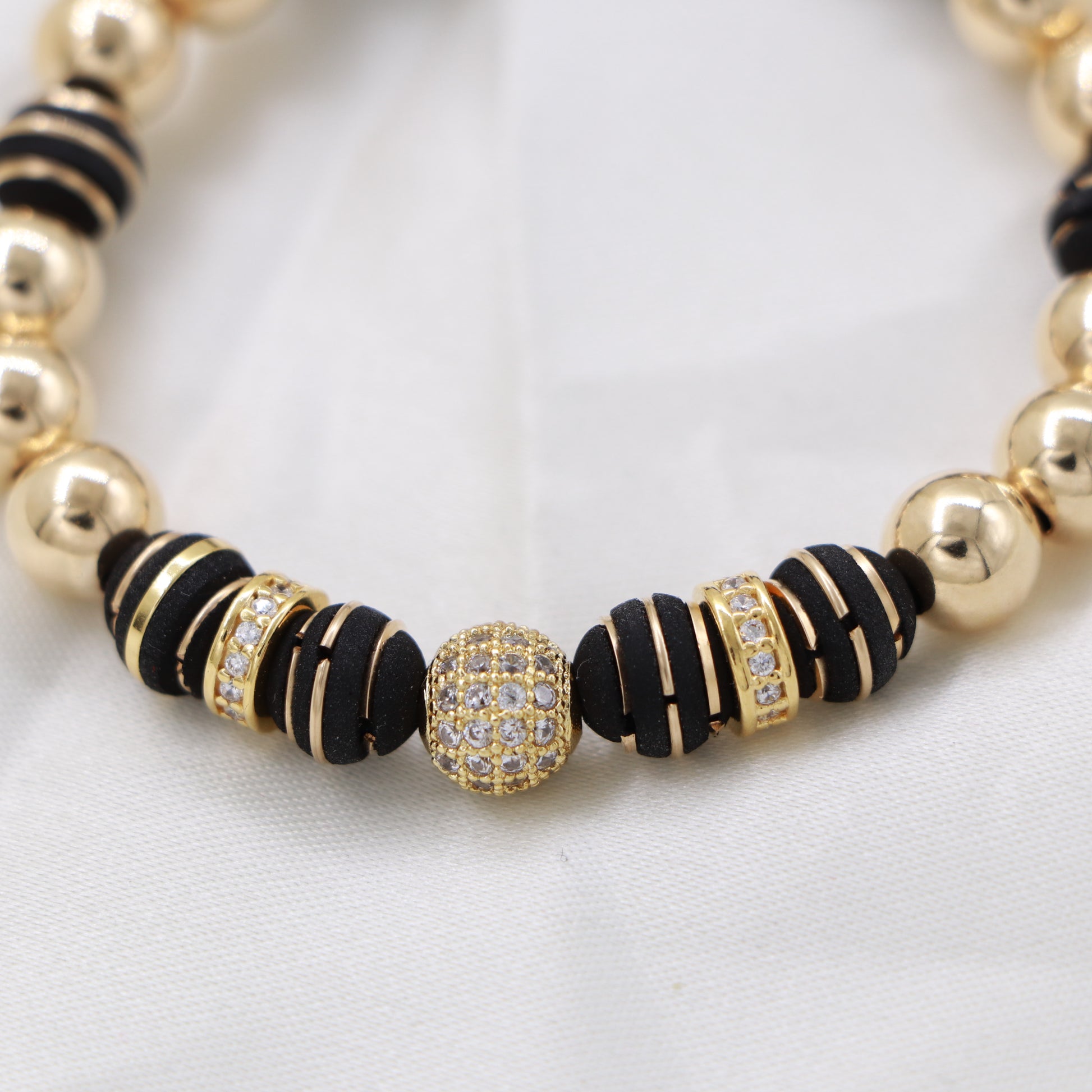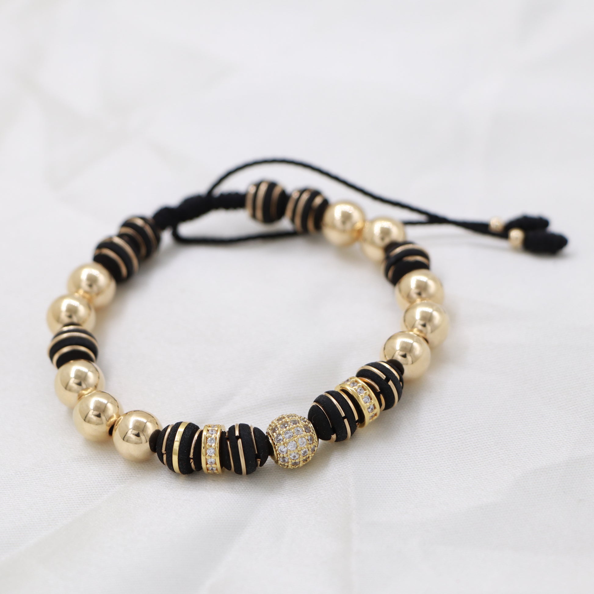 - Brazalete Con Bola De Fuego, Rondeles 8mm Y Balines 8mm En Oro Laminado 18k