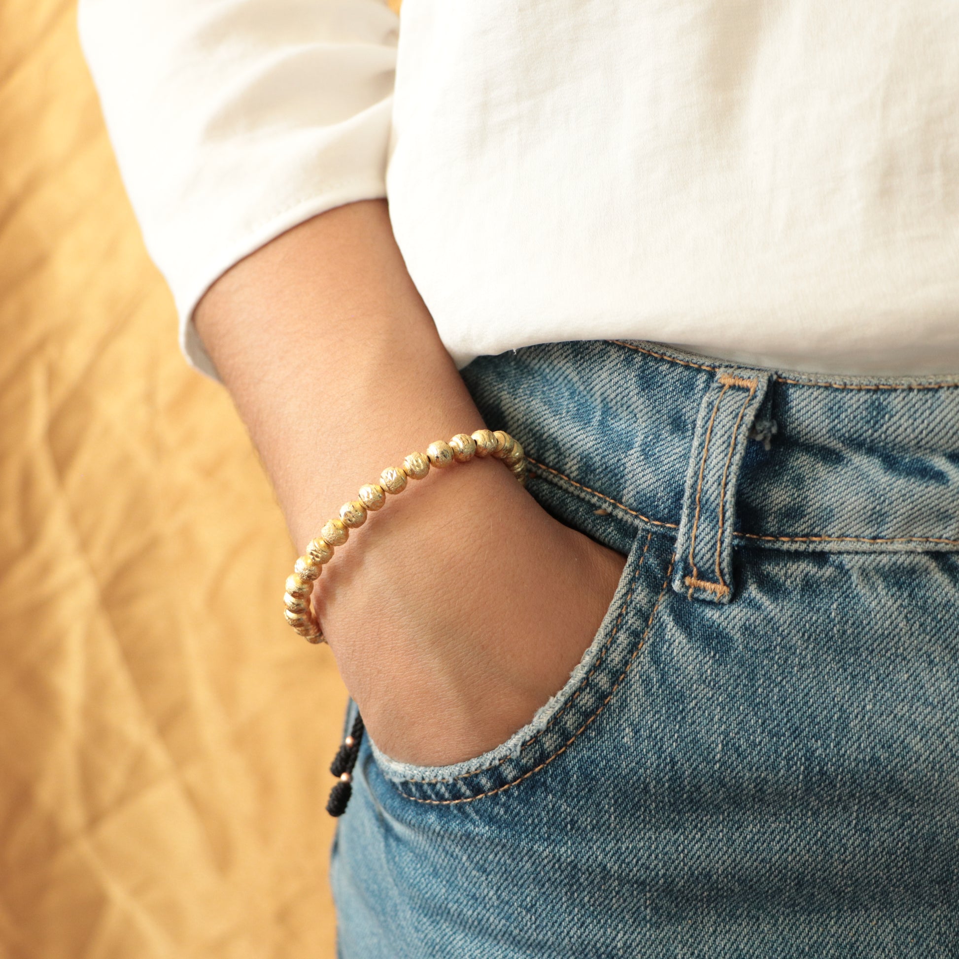 - Brazalete Con Balin Diamantado de 6mm En Oro Laminado 18k