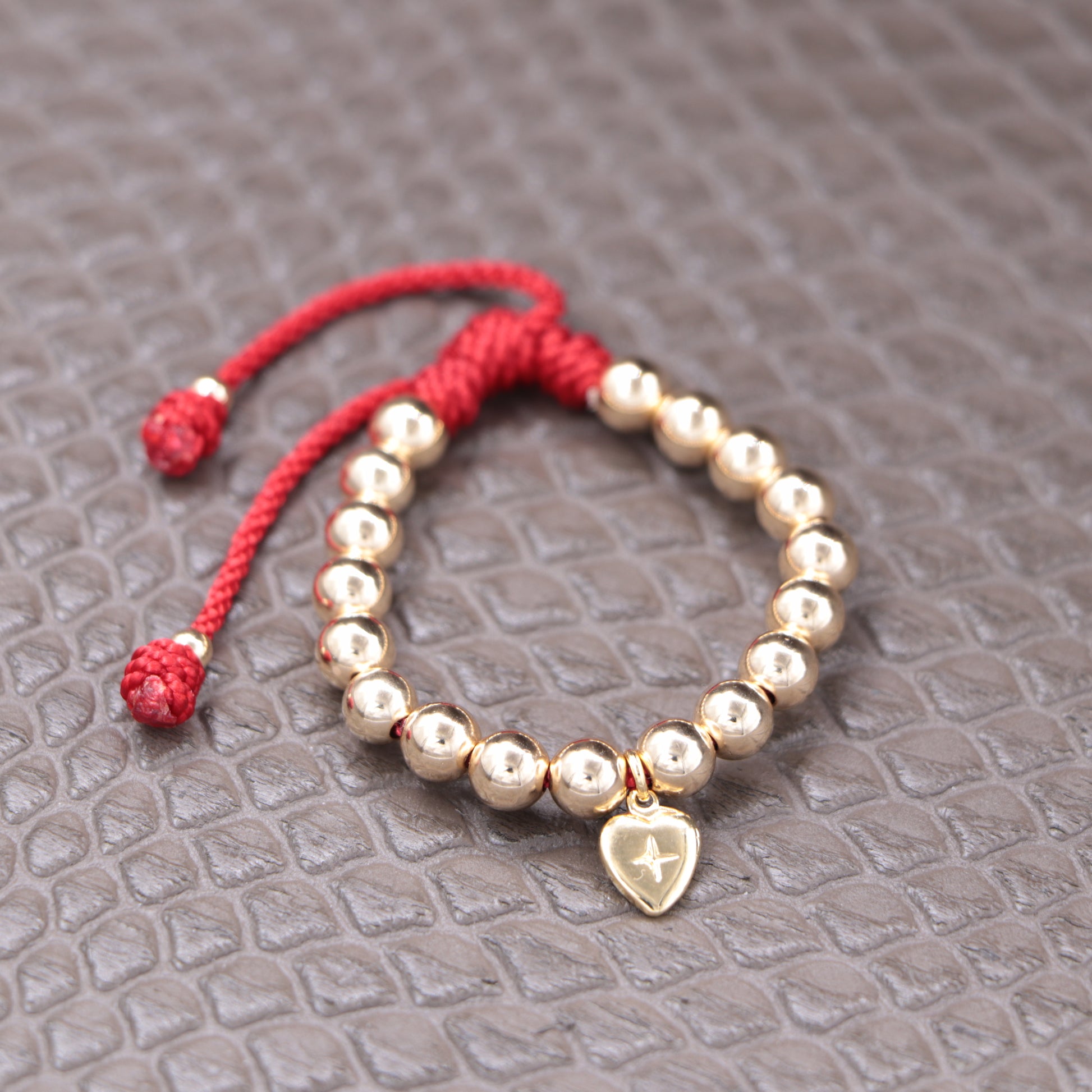 - Brazalete Con Balin De 5mm y Corazón En Oro Laminado 18k