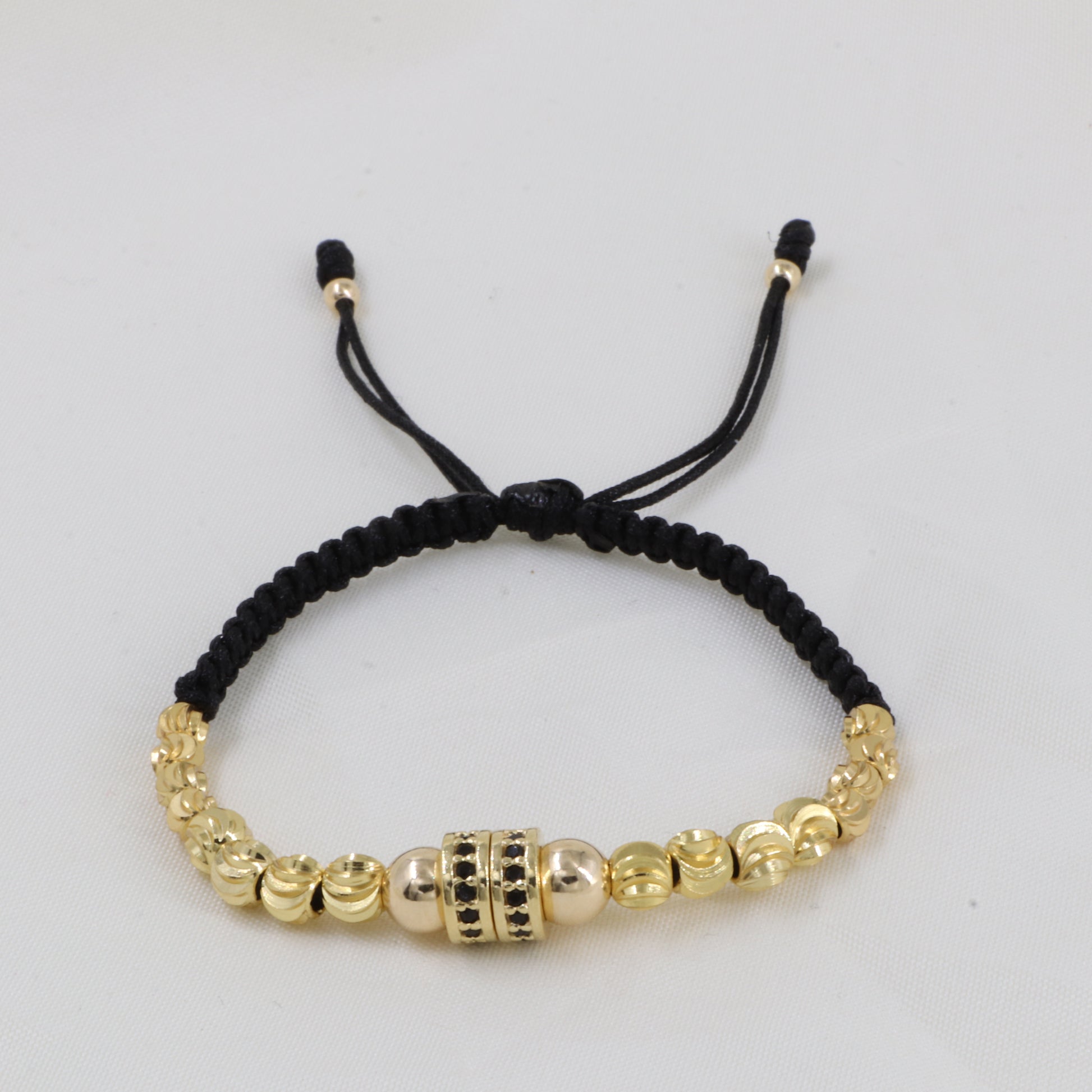 - Brazalete Rondeles Grandes Negros Y Balines Italianos 5mm En Oro Laminado 18k