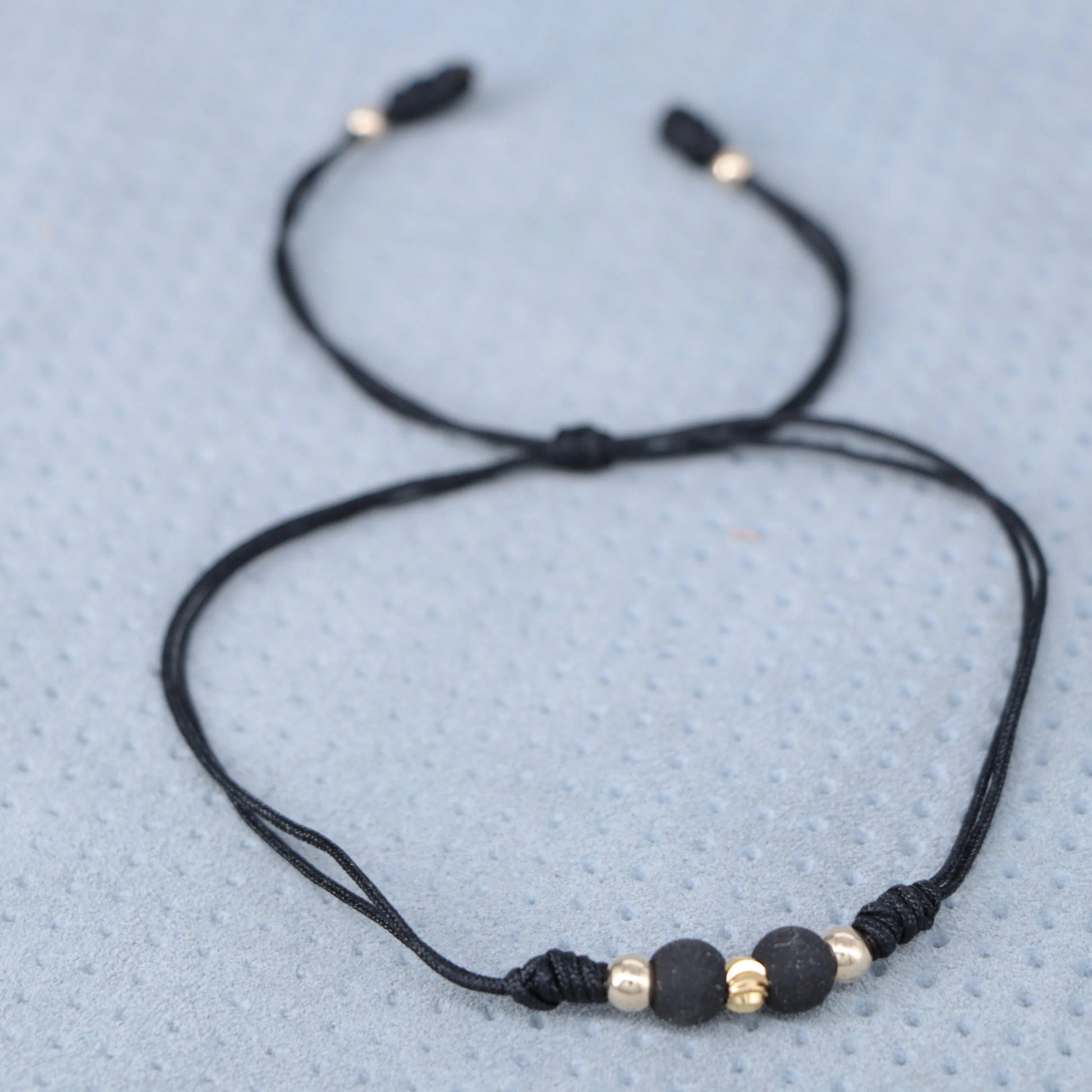 - Brazalete con neopreno liso en técnica de nudos con balin liso dorado, balin italiano de 4mm en oro laminado 18k