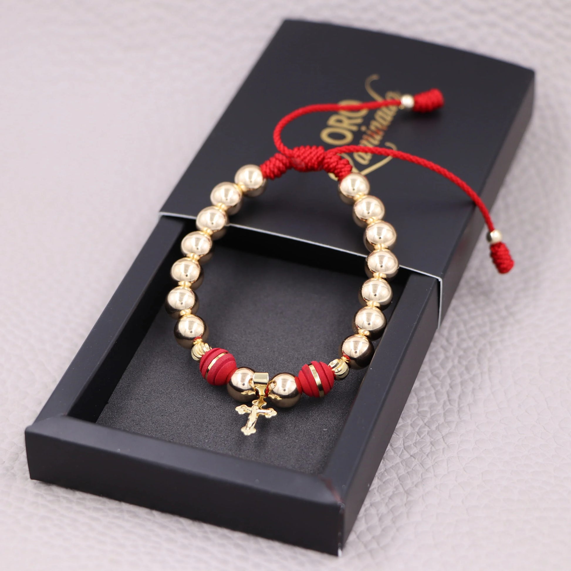 Brazalete Rojo Con Cristo Balín Oro Laminado 18k