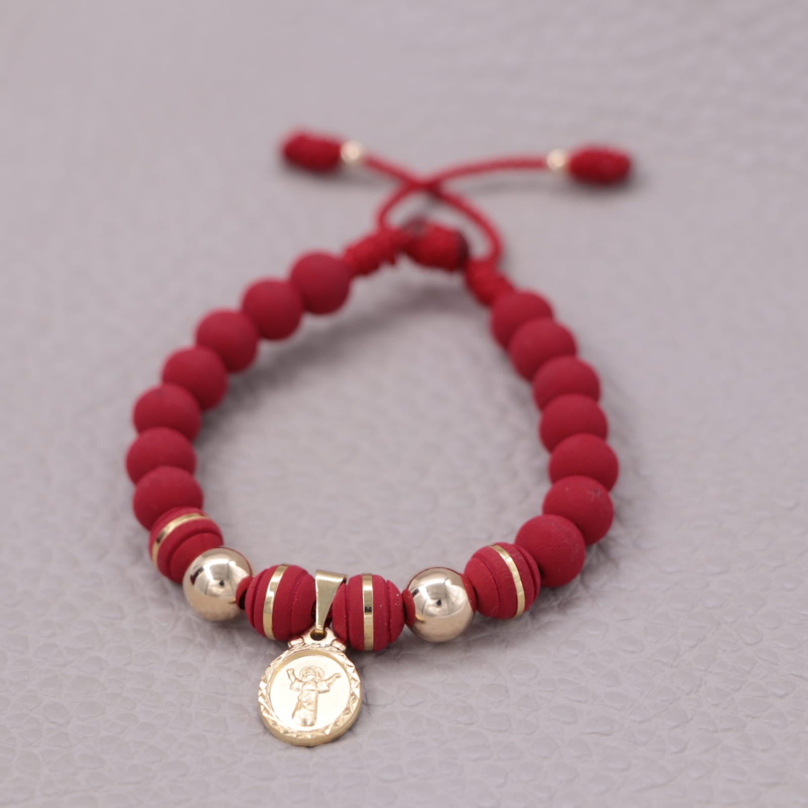 Brazalete Rojo Con Divino Niño Balín 8mm Oro Laminado 18k