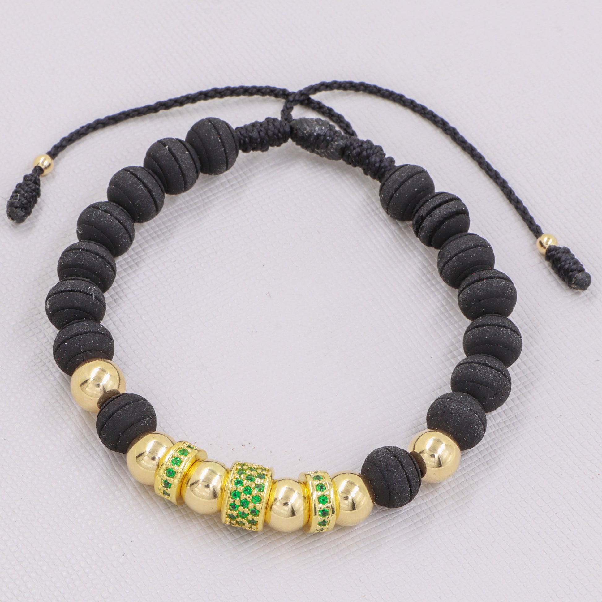 - Brazalete Con Rondel Tres Líneas, Rondel 8mm Y Balines 8mm En Oro Laminado 18k