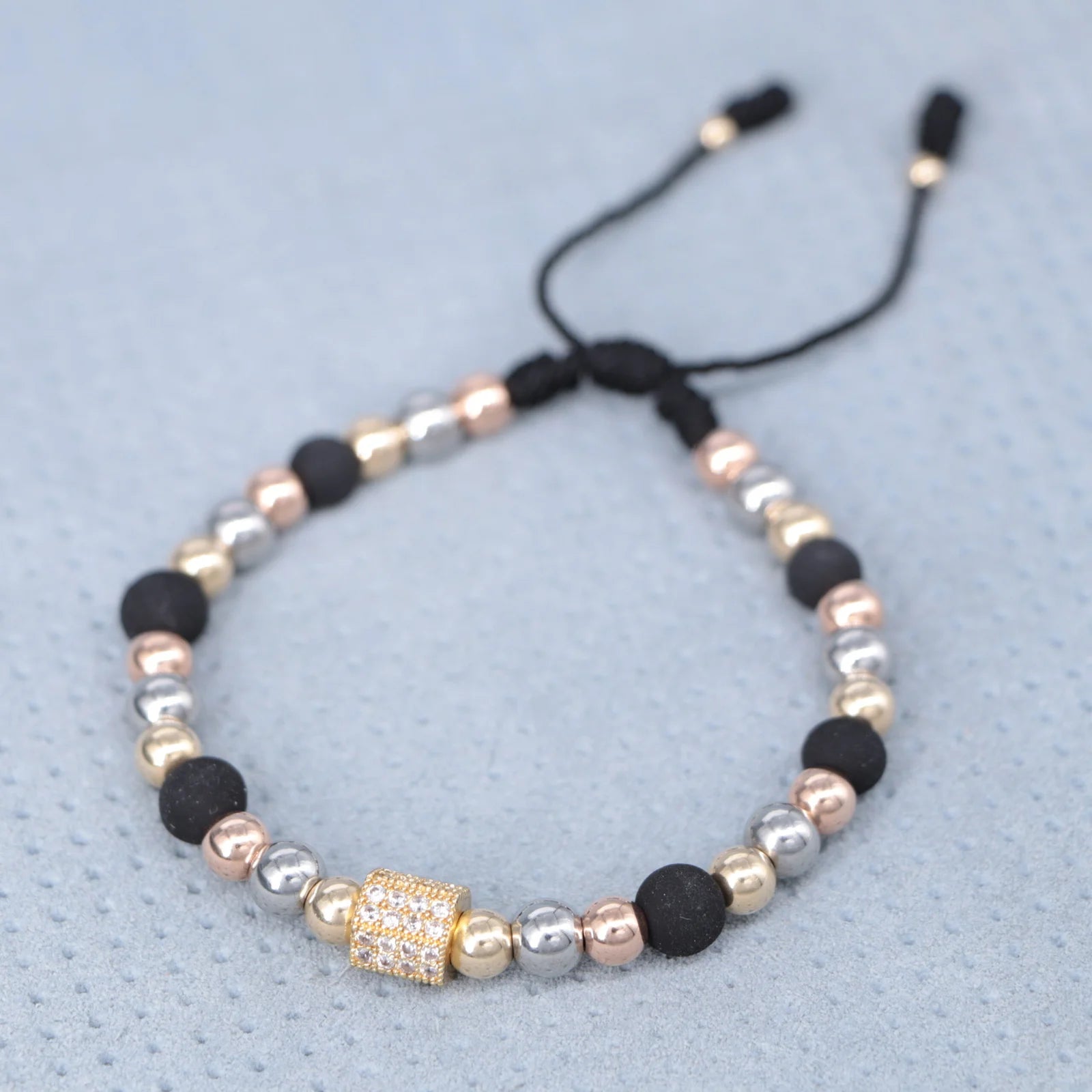 - Brazalete Tres oros Herraje Hexágono , Balin 5,6mm En Oro Laminado 18k