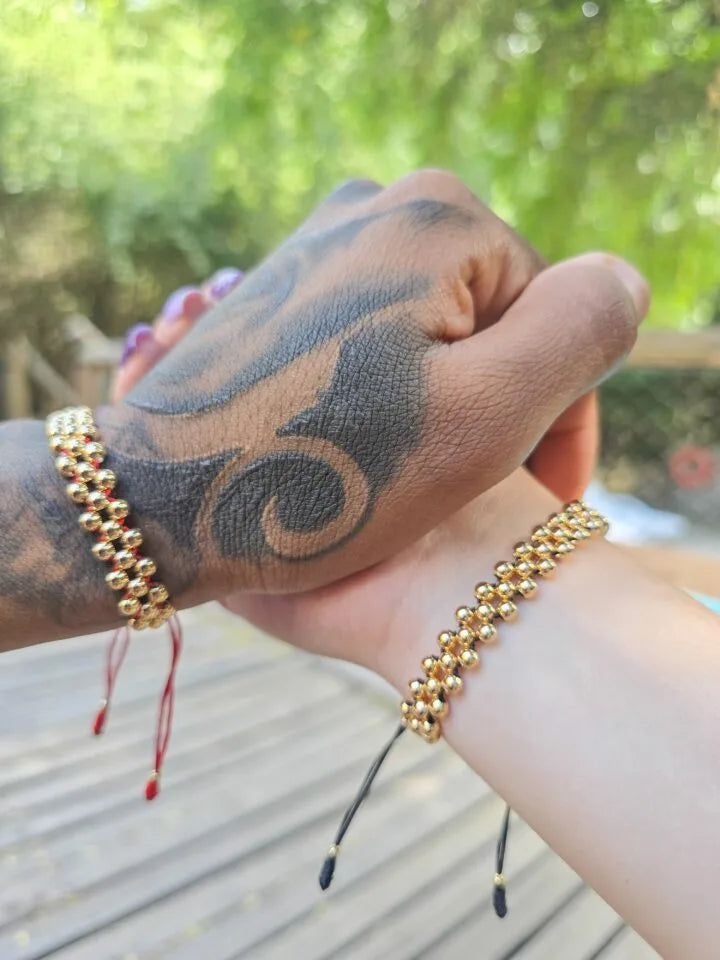 - Brazalete triple carril parejas x2 rojo y negro 5mm, oro laminado 18k