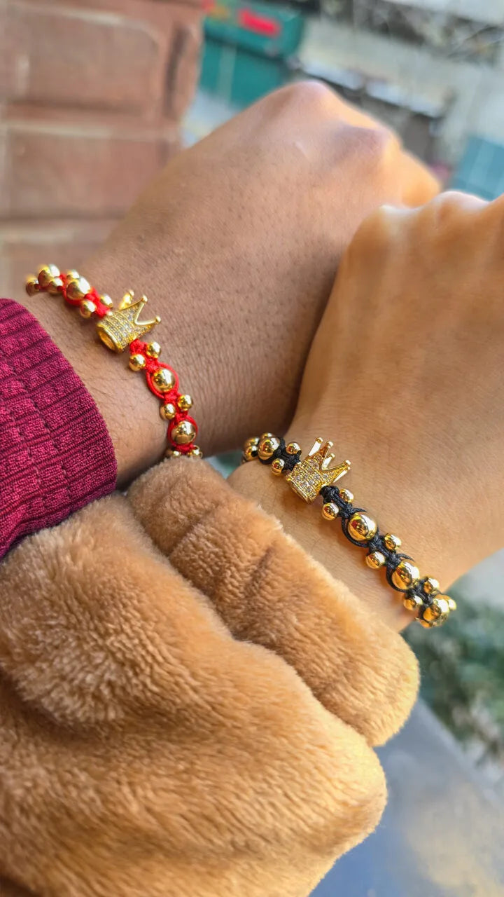- Brazaletes Coronas Con Circonias Parejas X2, (Negro y Rojo), Oro Laminado 18K