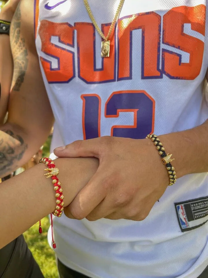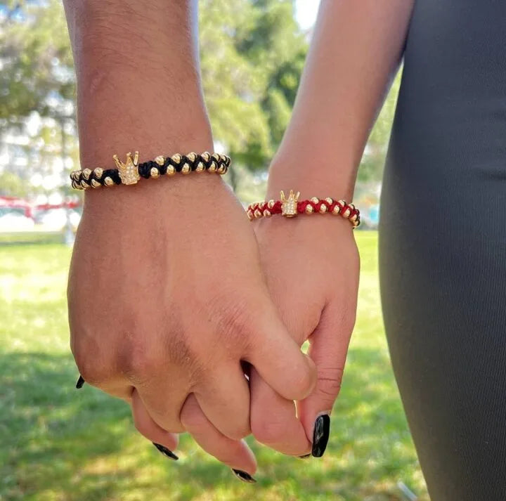 - Brazaletes Cruzados Corona Reina y Rey Oro Laminado 18k