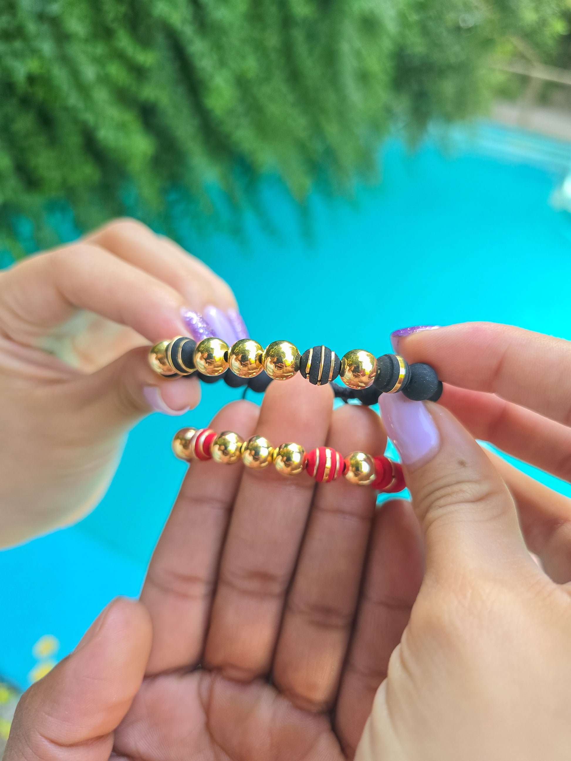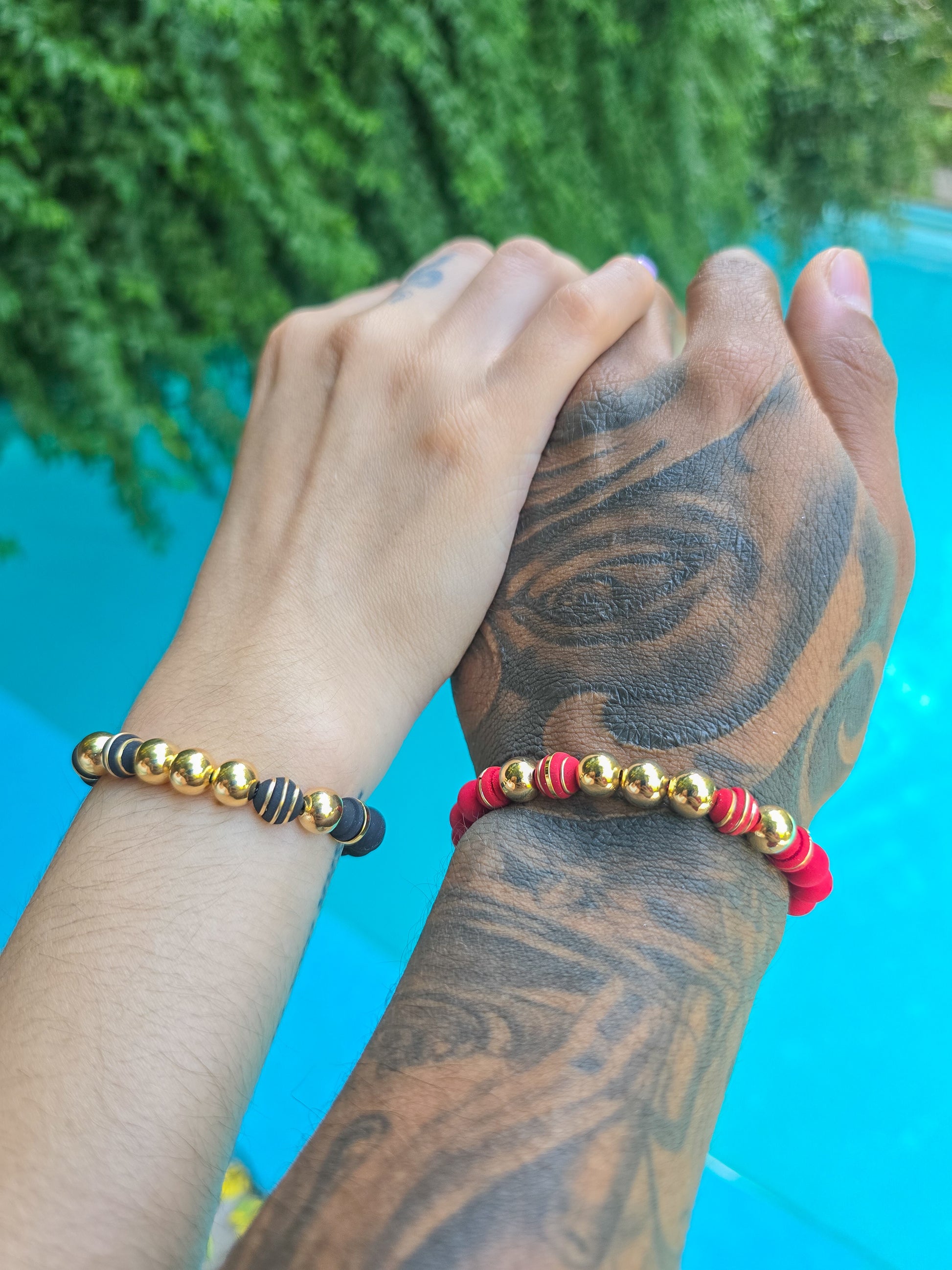 - Brazaletes de Energía Compartida X2, (Rojo y Negro), Oro Laminado 18k