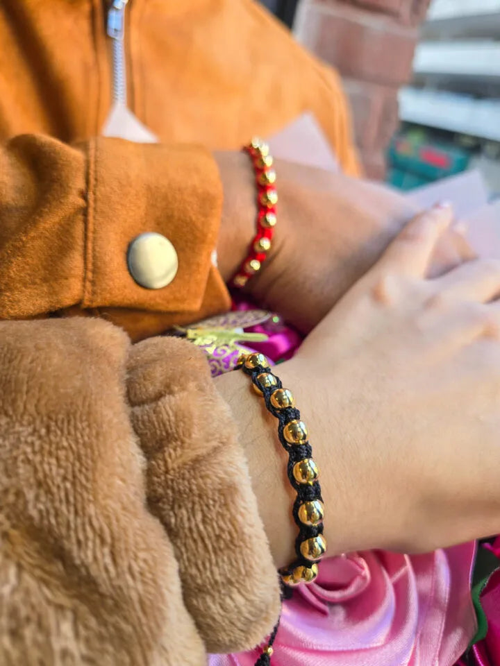 - Brazaletes Tejidos De Amor x2 Rojo y Negro, Oro Laminado 18k