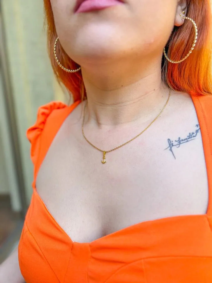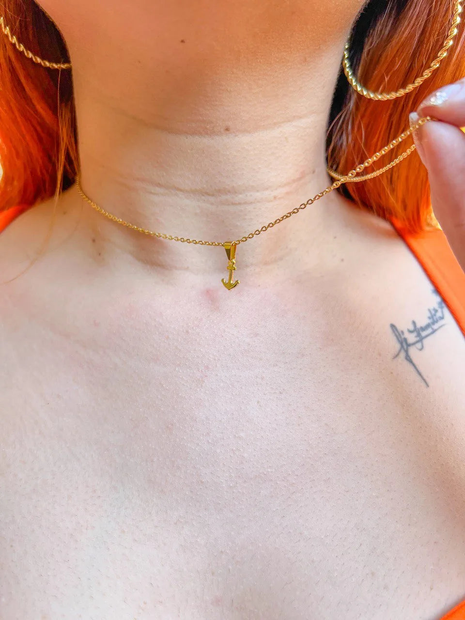 Cadena Aros Y Colgante Ancla En Oro Laminado 18K