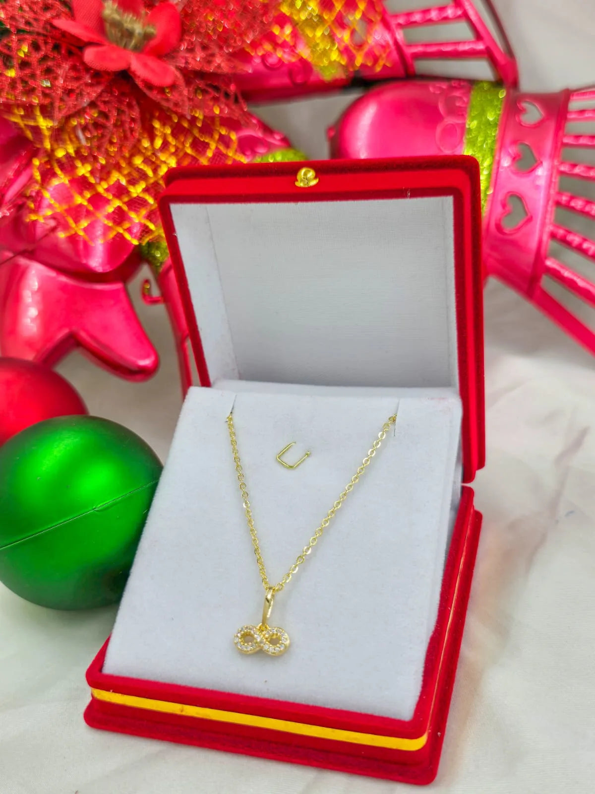 Cadena Aros Y Colgante Infinito Con Circonias En Oro Laminado 18k