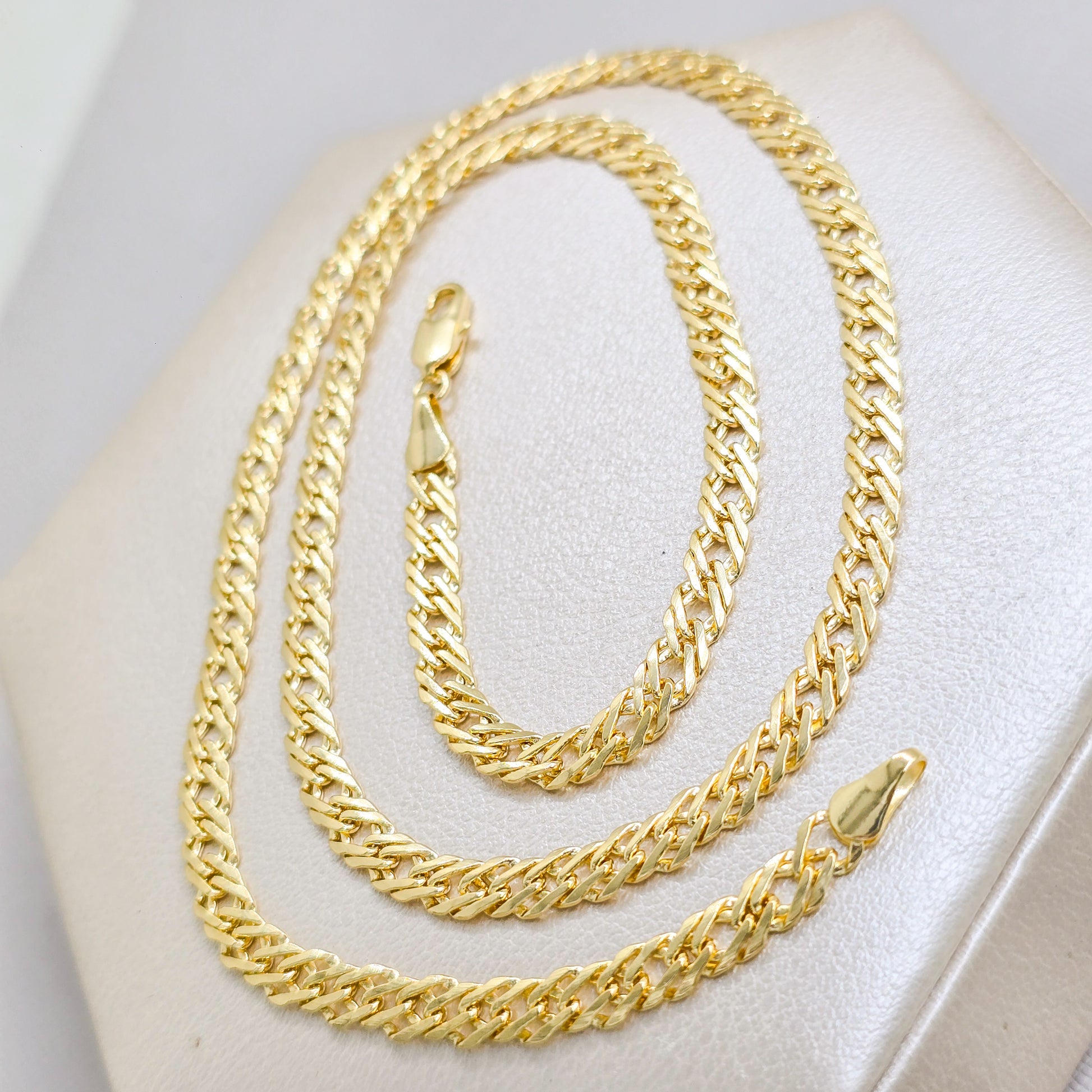 - Cadena Cubana Cruzada Gruesa Oro Laminado 18k