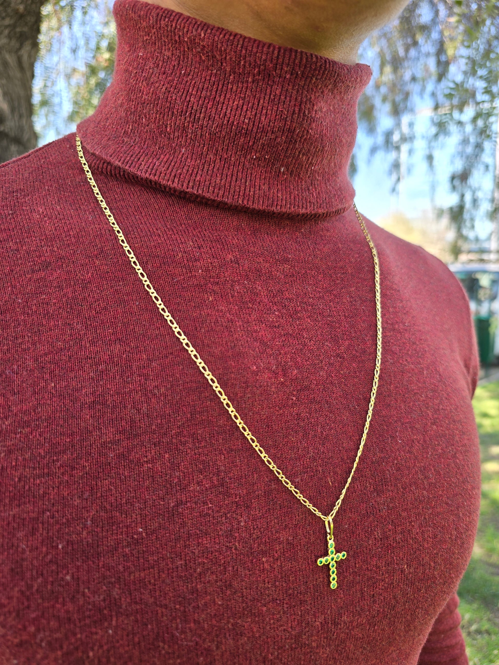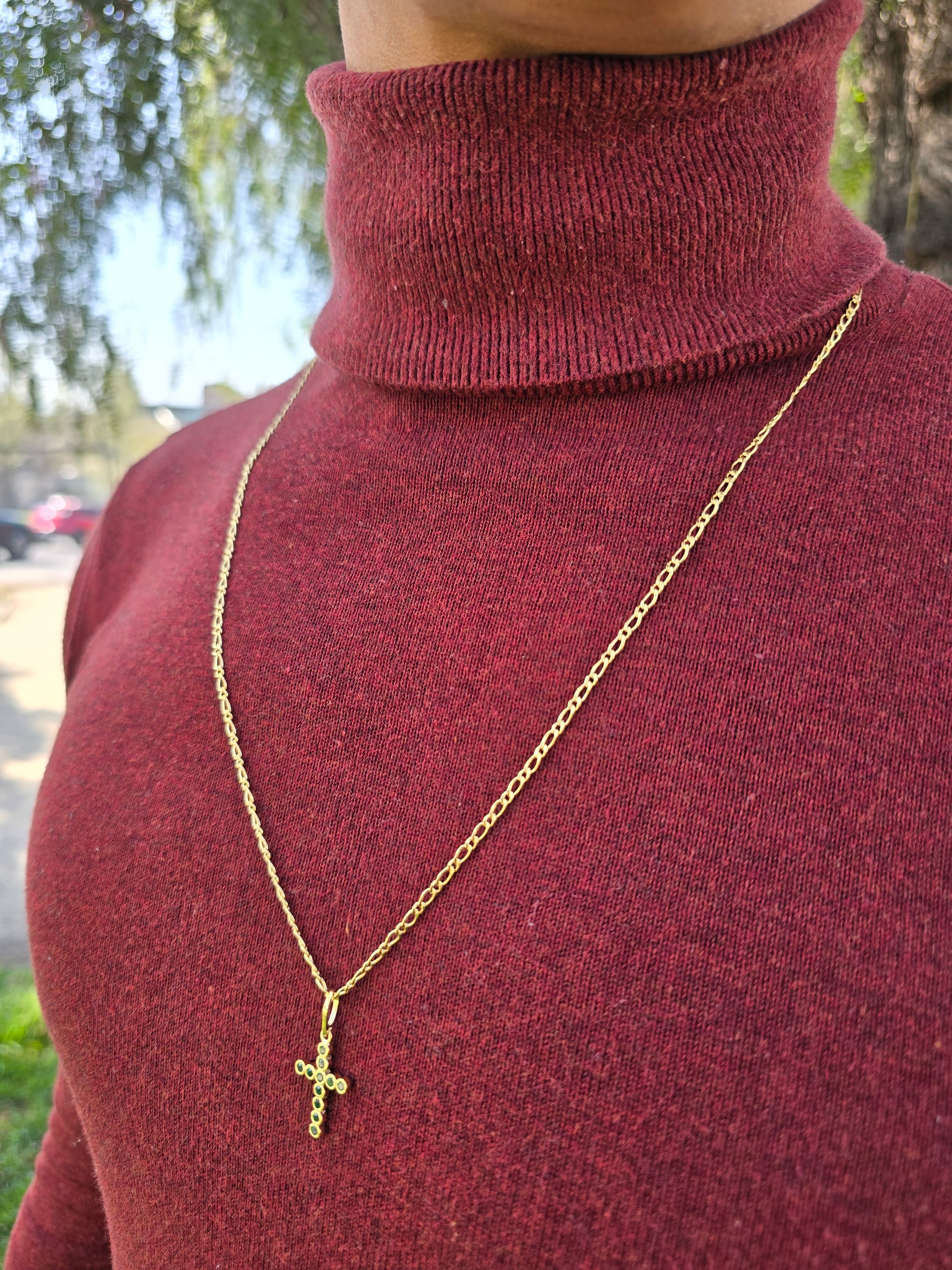 - Cadena Tejido 1×1 Semi Delgada Con Colgante Cruz Mini Swarovski Oro Laminado 18k