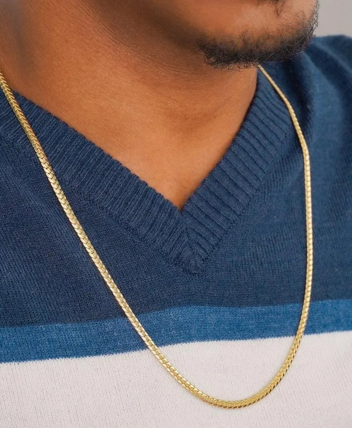 - Cadena Tejido Piel De Serpiente Semi Gruesa Oro Laminado 18k