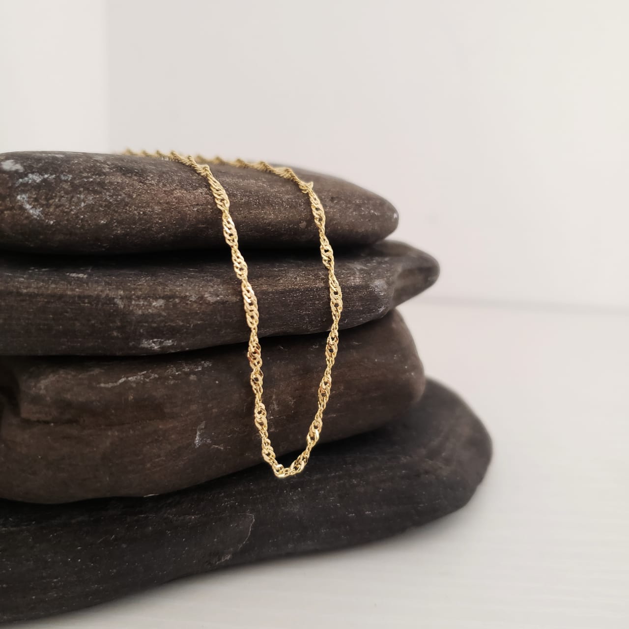 Cadena Tejido Singapur Alargada Oro Laminado 18k