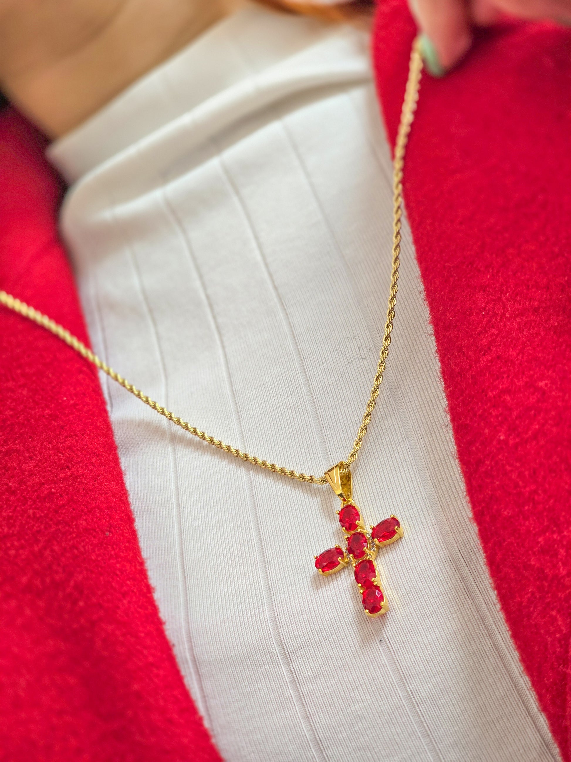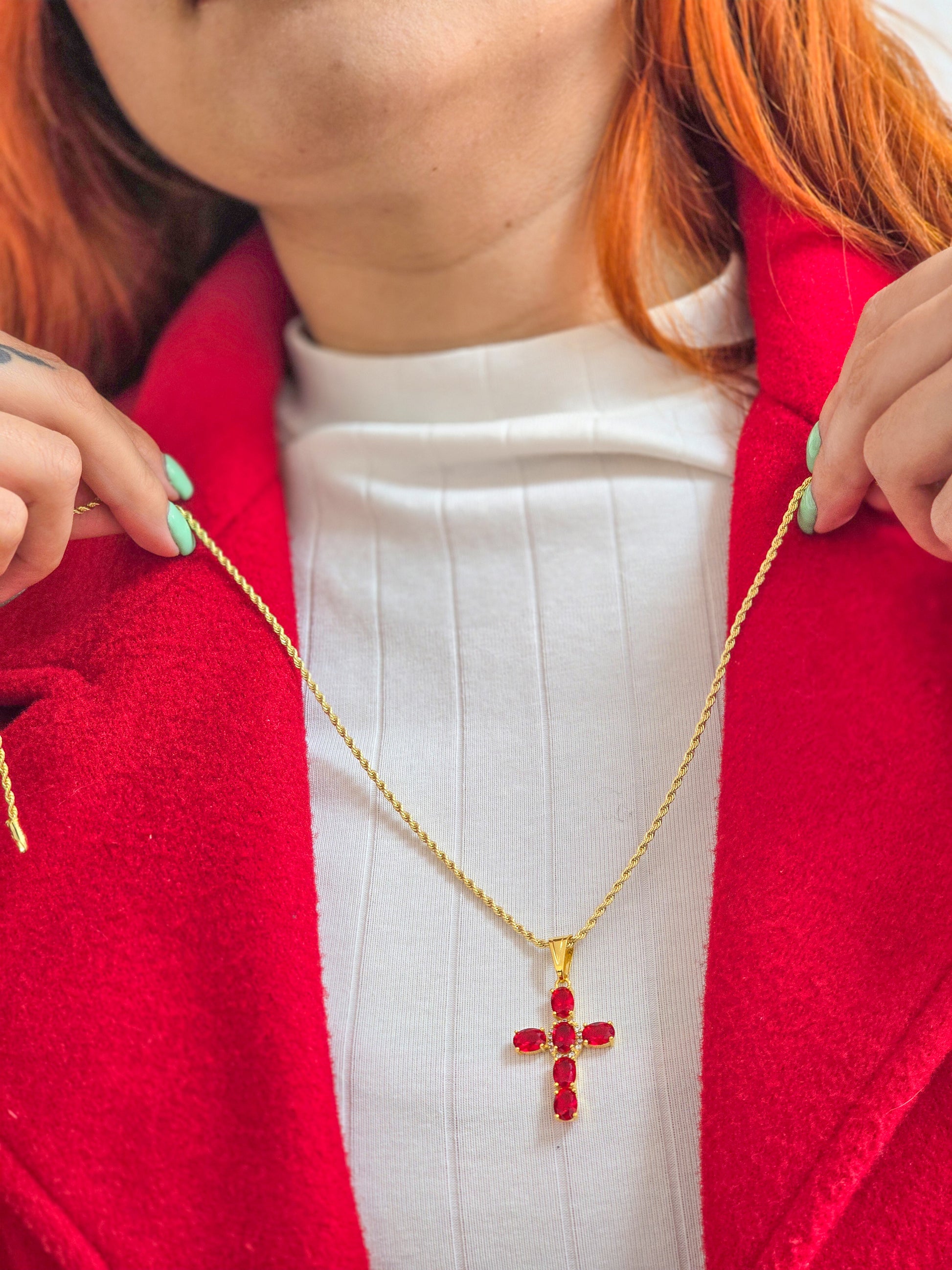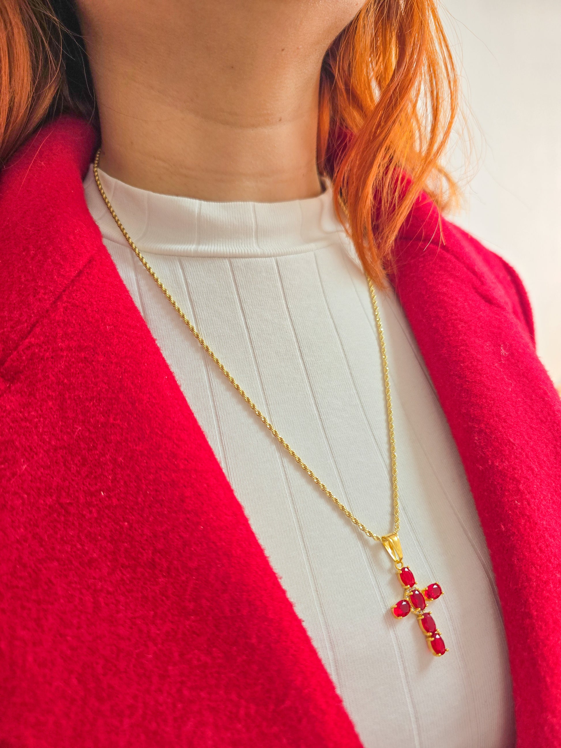 Cadena Tejido Tourbillon delgada Y Colgante Cruz Brightness Oro laminado 18k