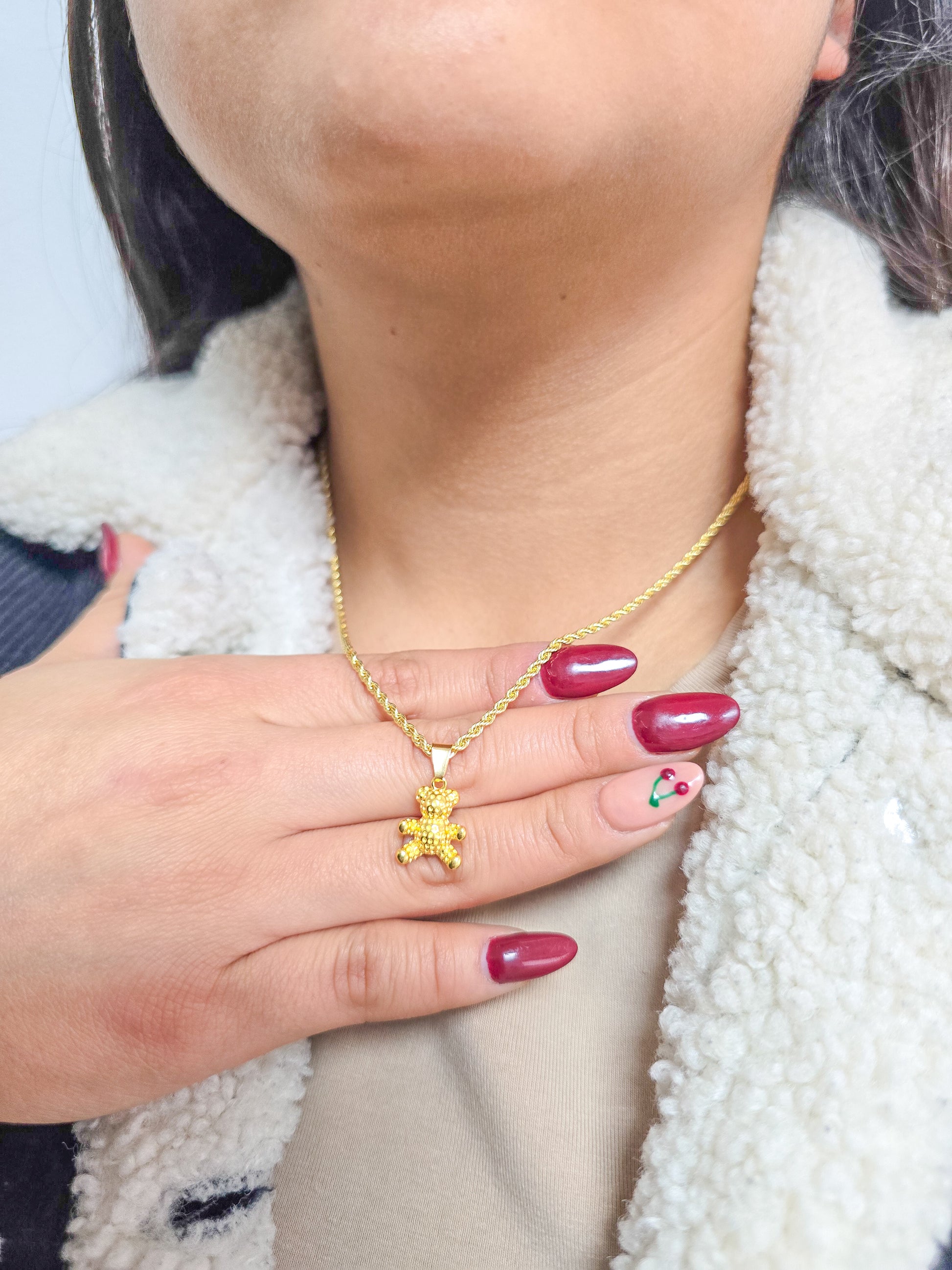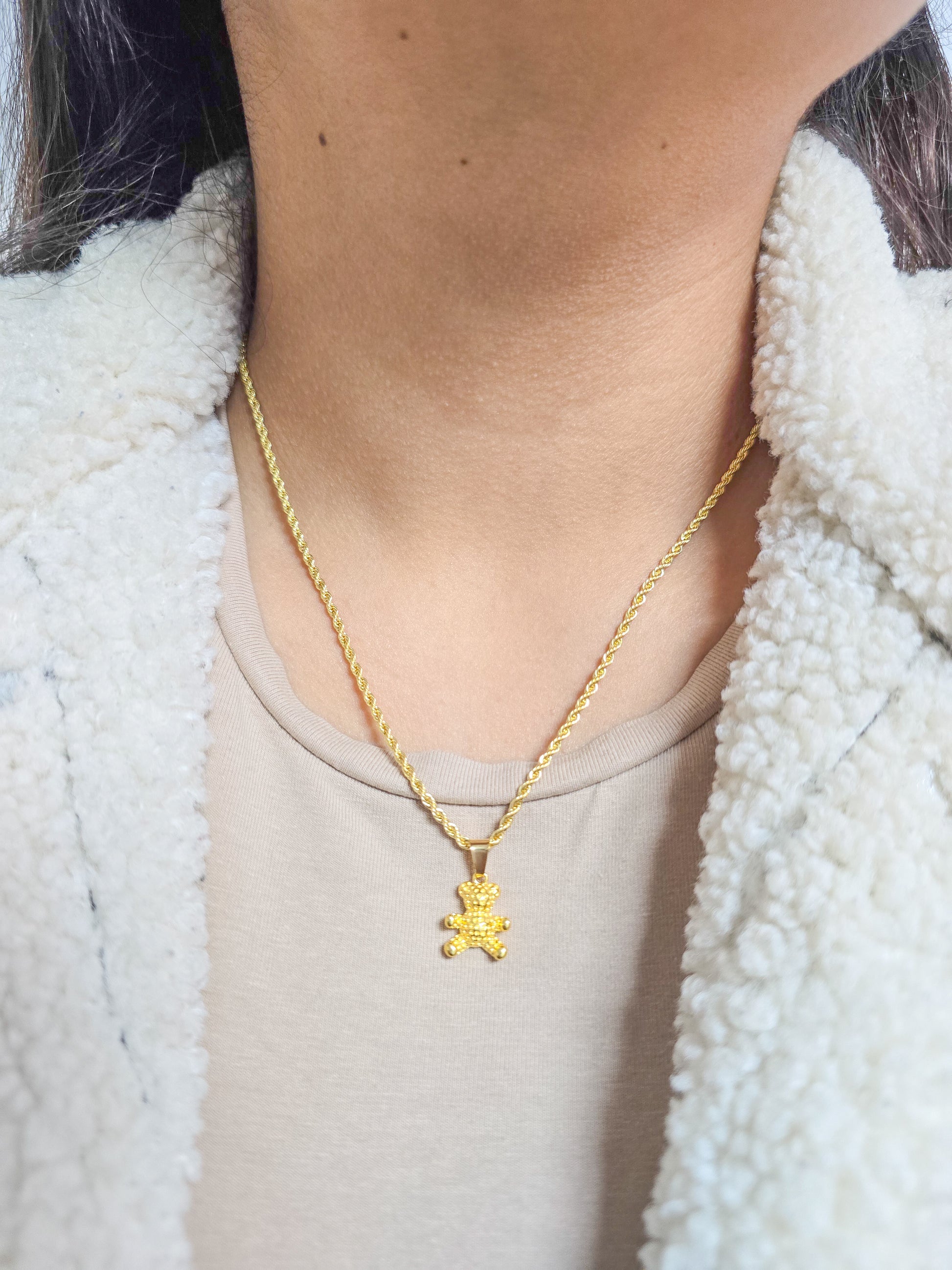 - Cadena Tejido Tourbillon Con Dije Osito Osito Oro Laminado 18k