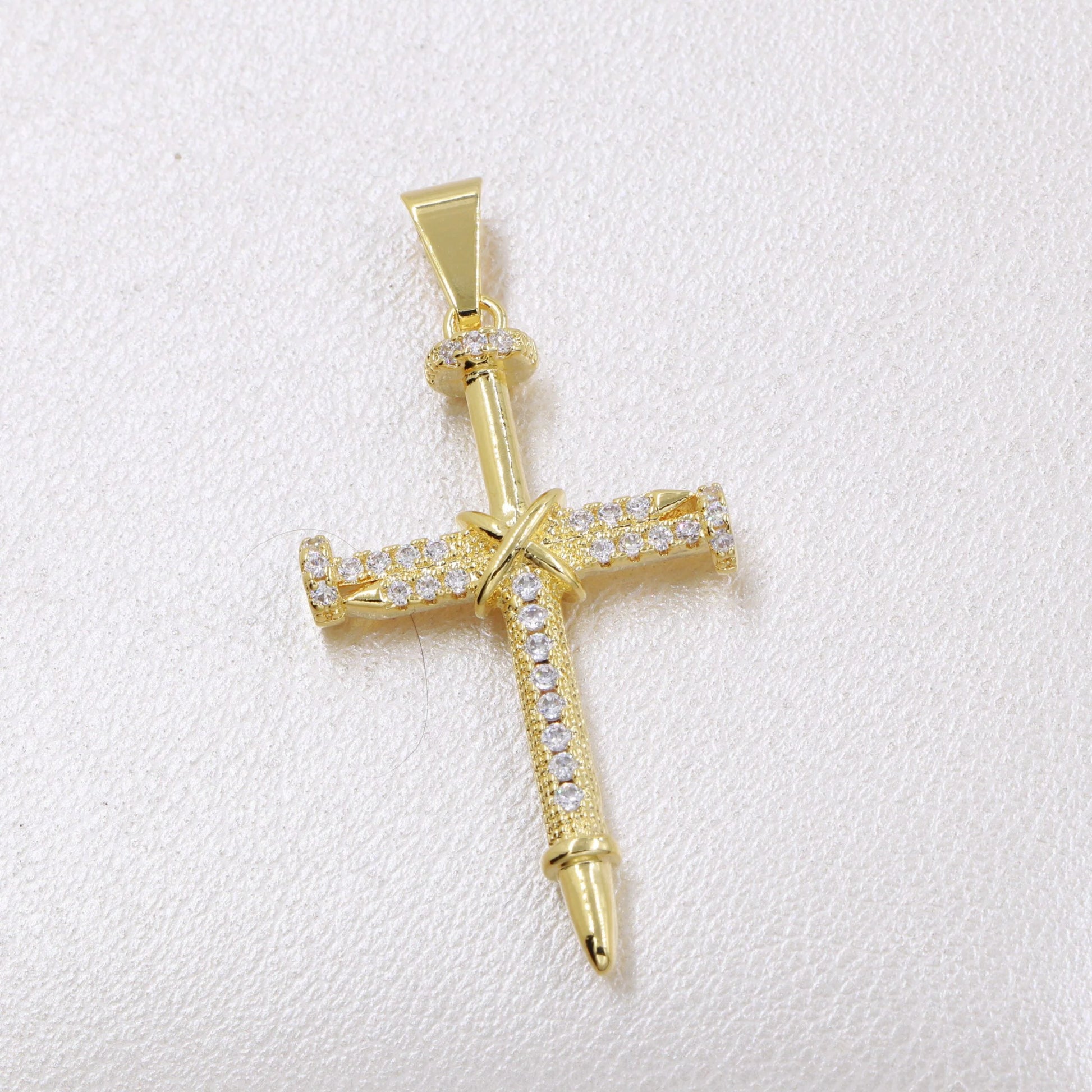 Colgante Cruz Clavos Circonias Cristal Oro Laminado 18k