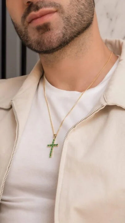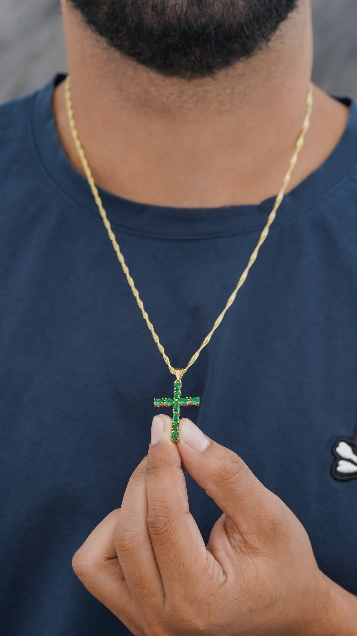 Colgante Cruz Esmeralda Oro Laminado 18k