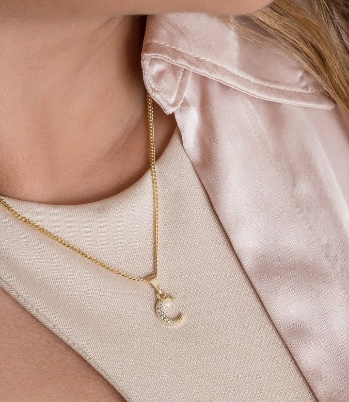 - Colgante Media Luna Circonias Oro Laminado 18k