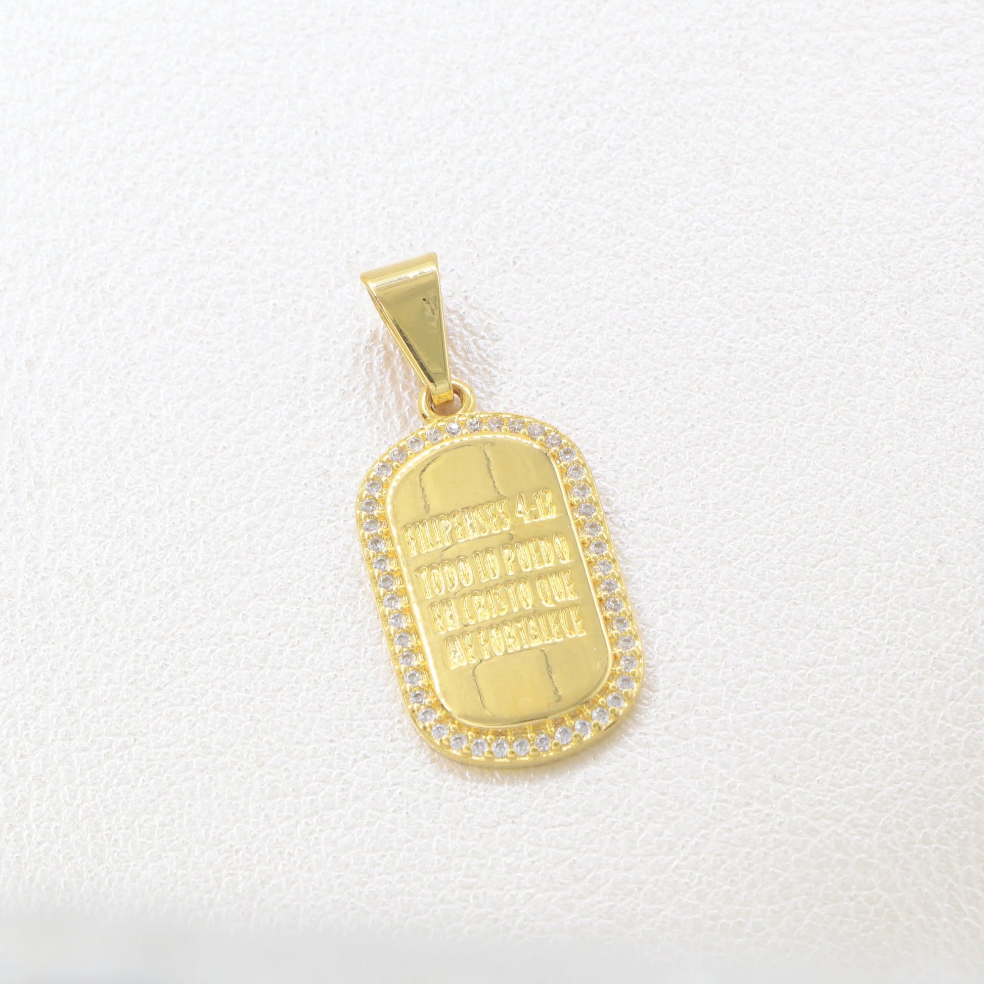 - Colgante Placa Filipenses 4:13, Oro Laminado 18k