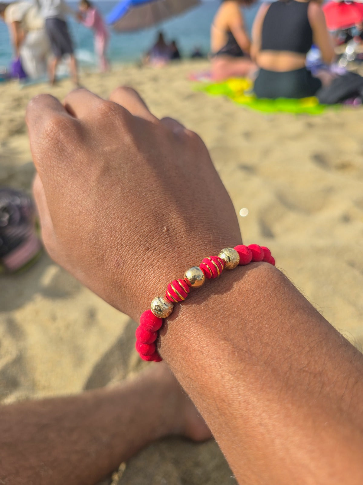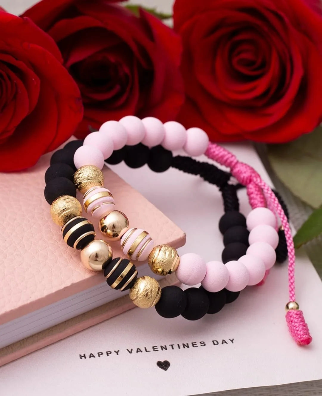 - Manillas Parejas X2, de 8mm (Rosa y Rojo), Oro Laminado 18k