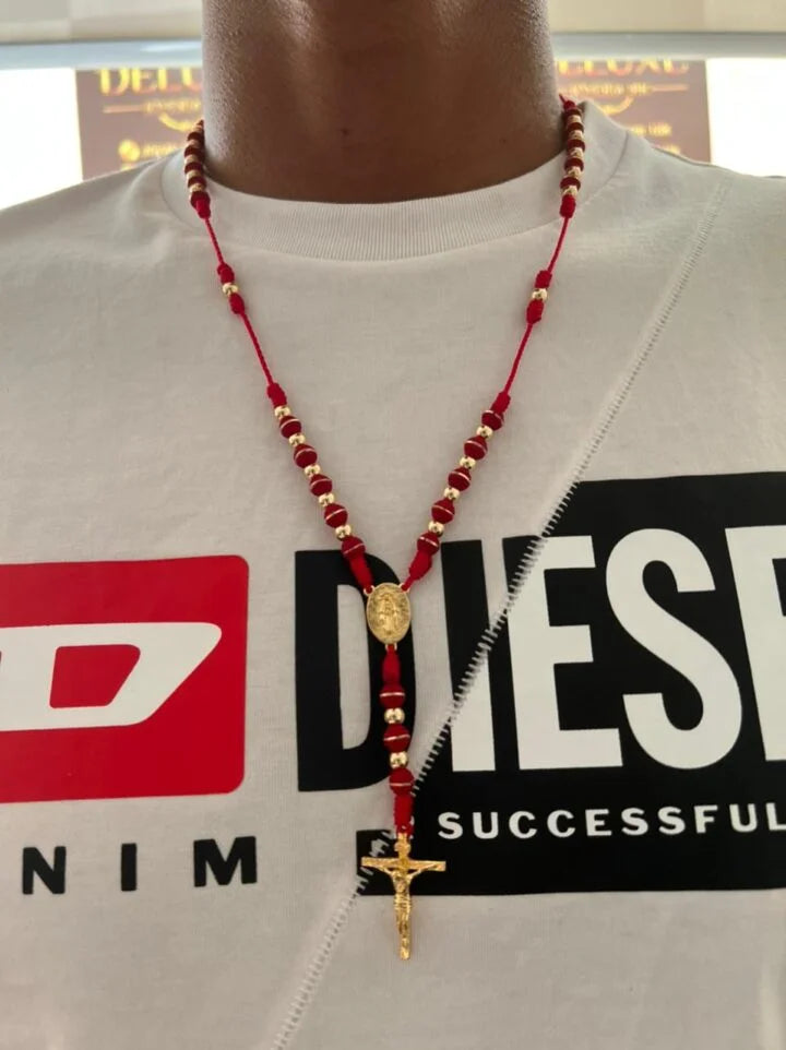 - Rosario Artesanal De 8mm, 65cms Oro Laminado 18k
