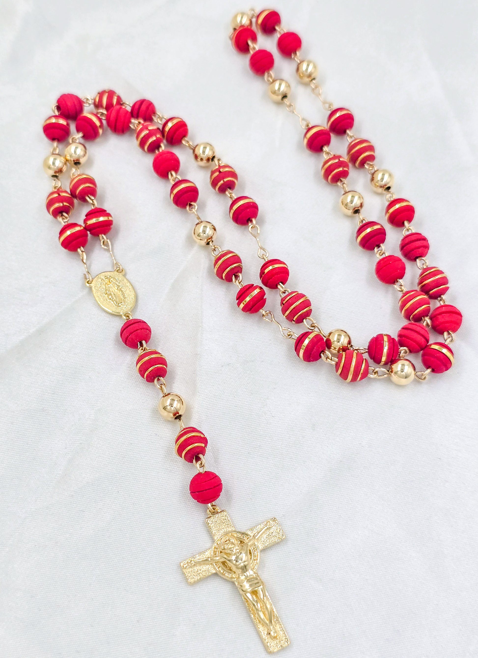 • Rosario Con Cruz San Benito Oro laminado 18k