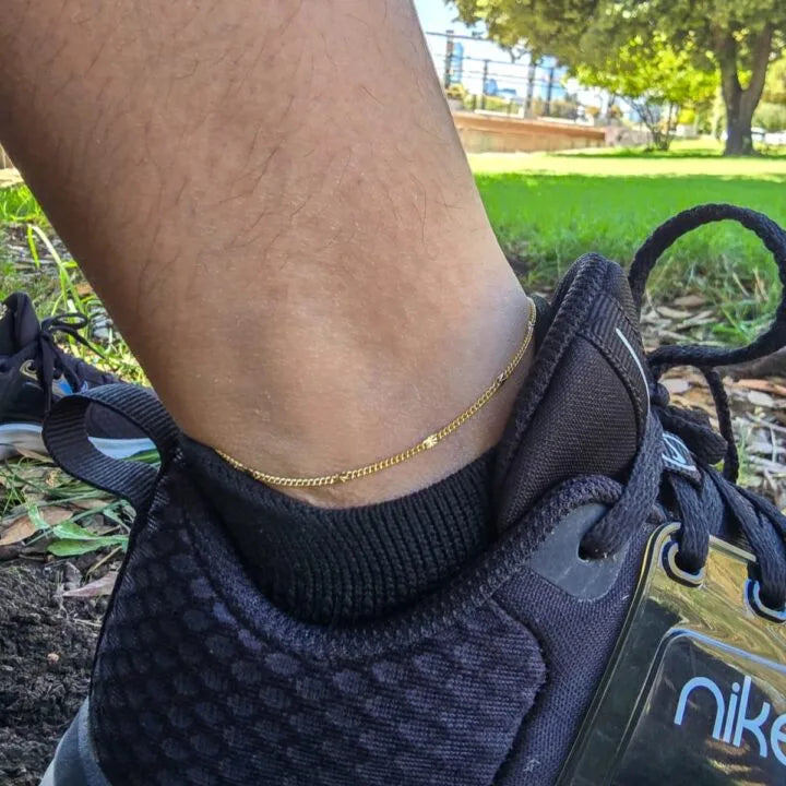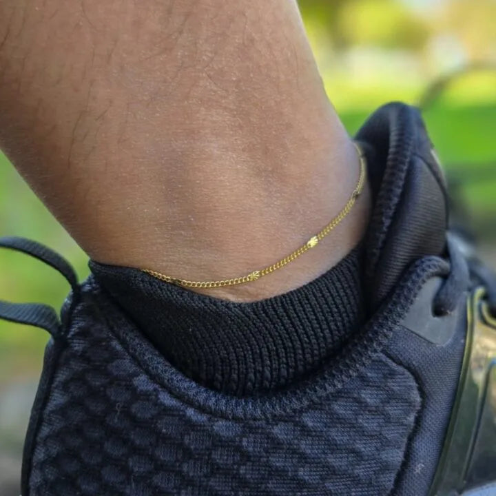 Tobillera Cubana Destellos Sol Oro Laminado 18k
